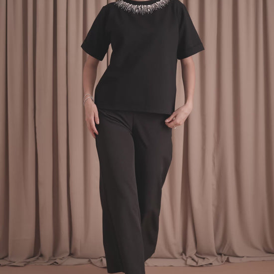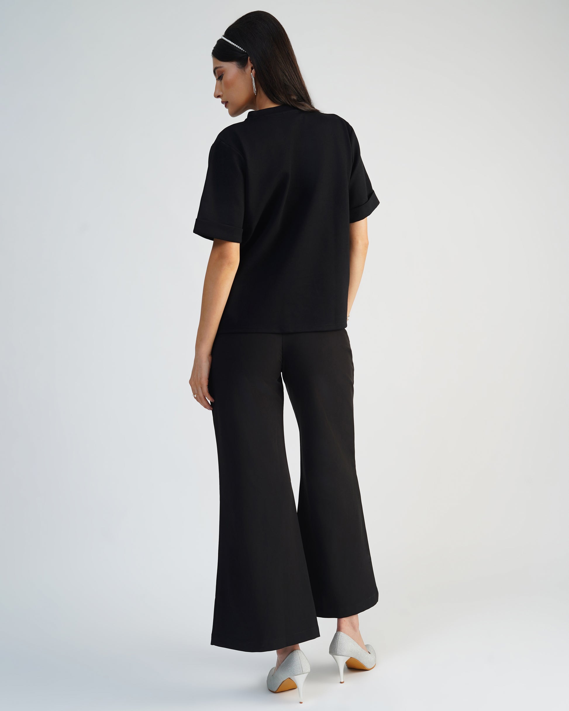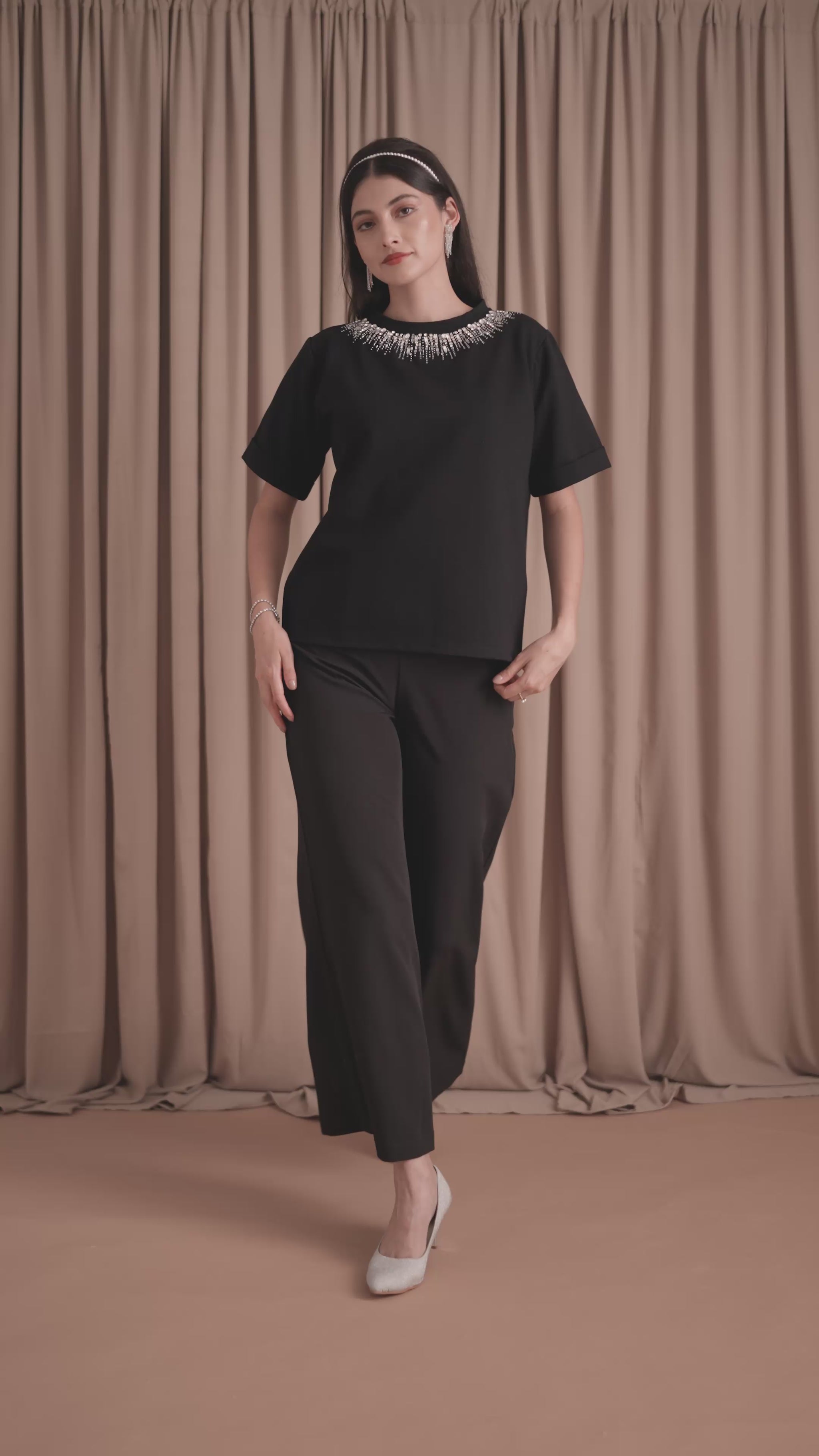 Artistic design meets effortless sophistication. This elevated top features a beautifully draped, asymmetrical hemline and a subtle side tuck that creates an architectural flow. The iconic Lovera embroidered initial, making it the ultimate versatile foundation for chic daywear and sophisticated separates.