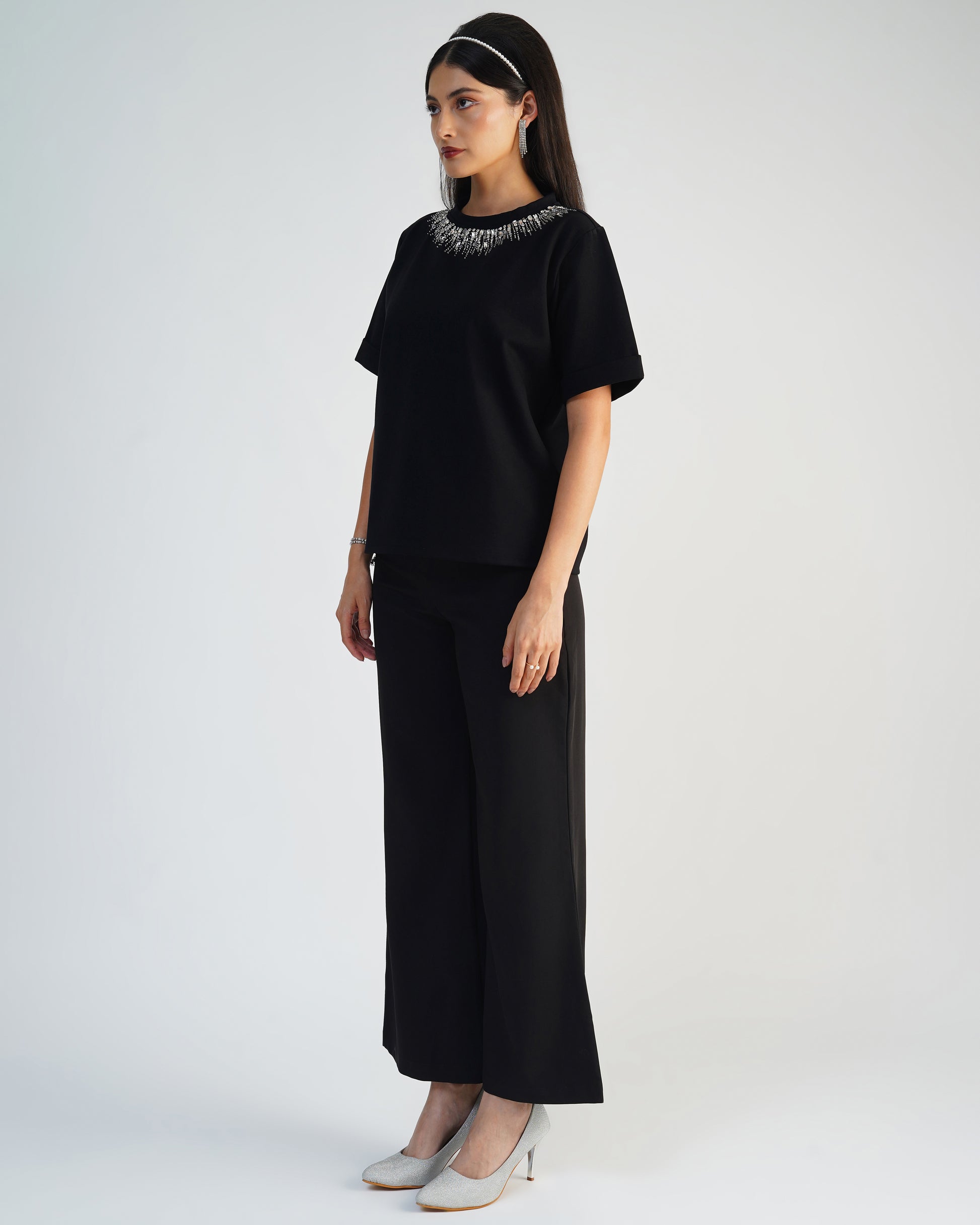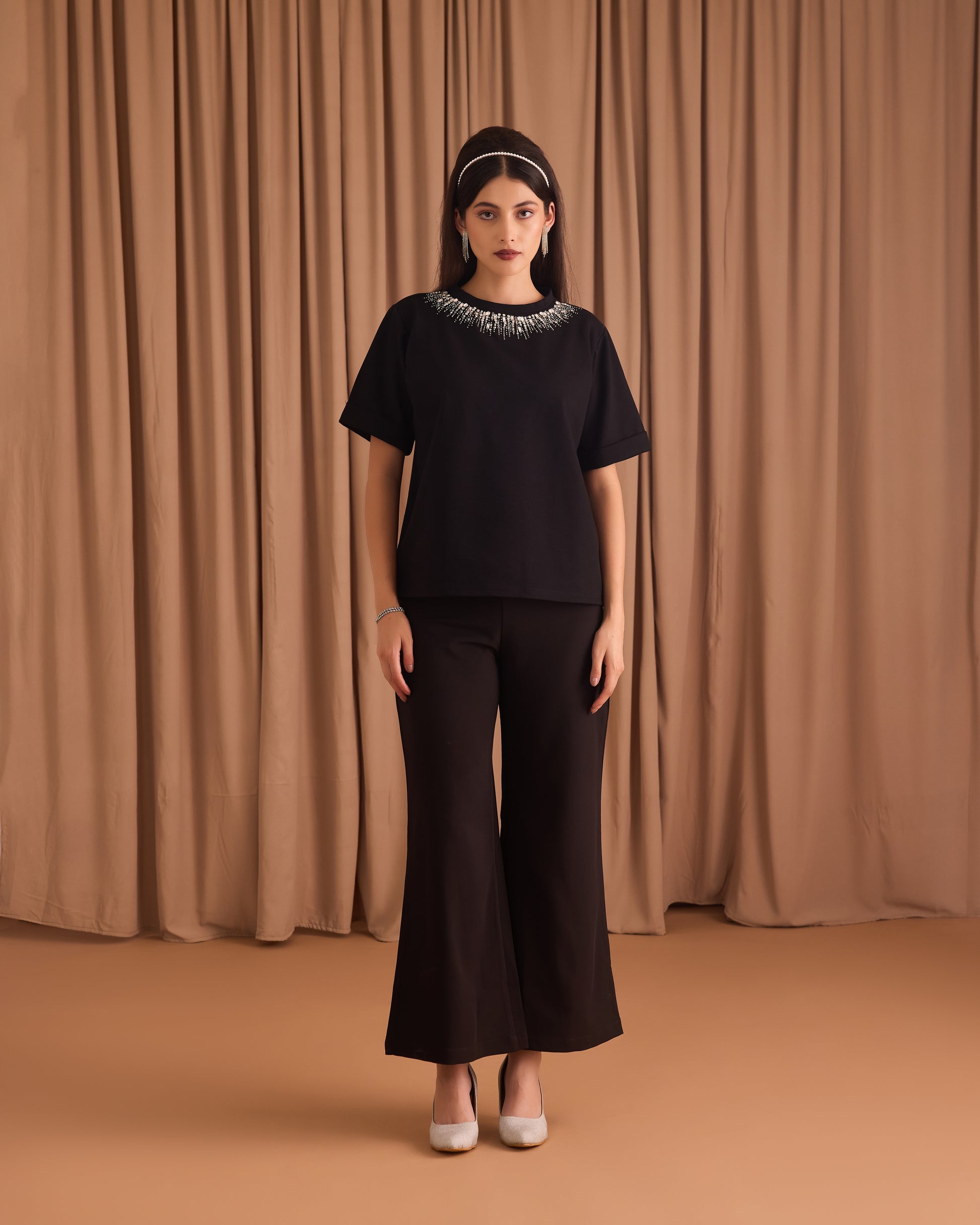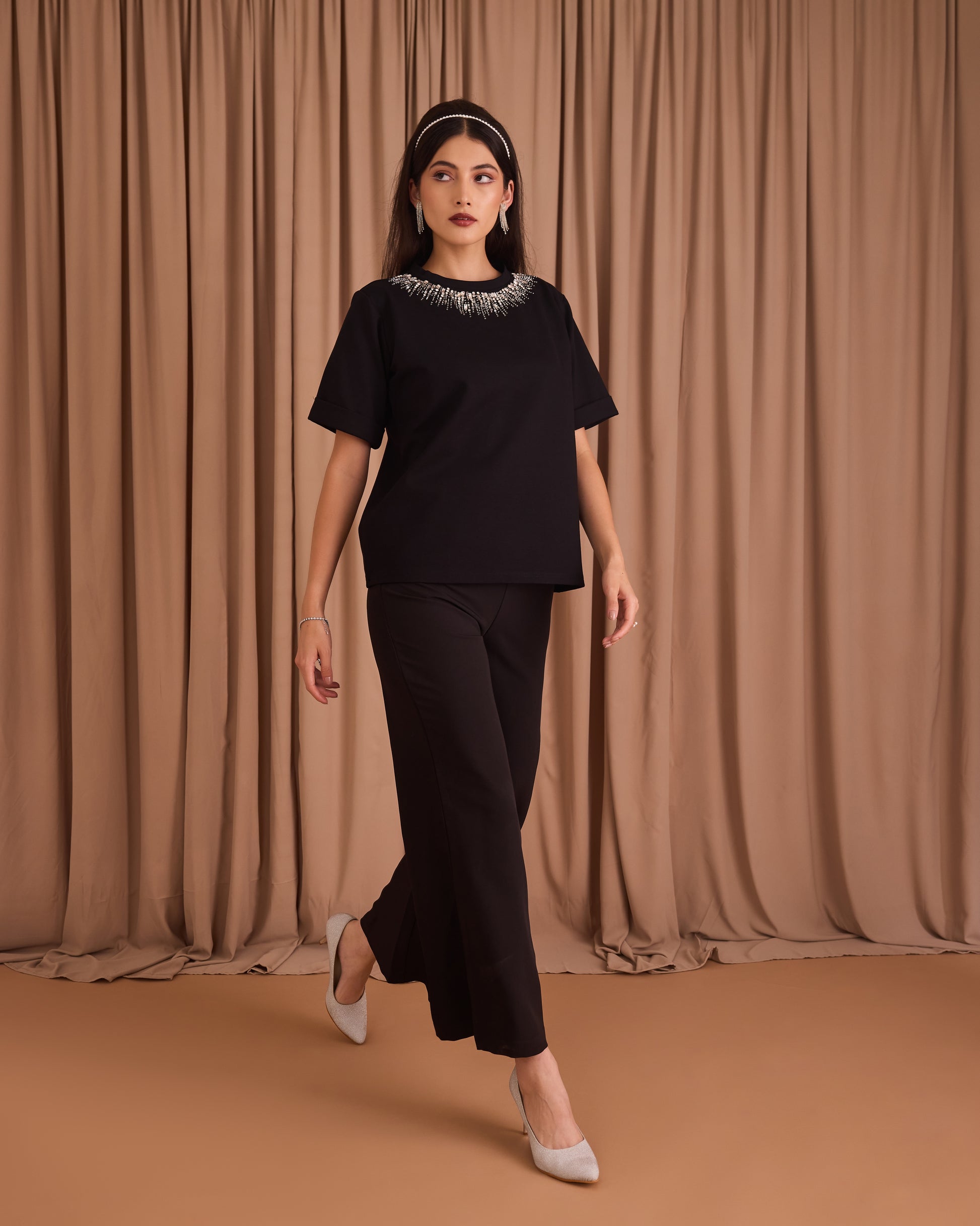 Artistic design meets effortless sophistication. This elevated top features a beautifully draped, asymmetrical hemline and a subtle side tuck that creates an architectural flow. The iconic Lovera embroidered initial, making it the ultimate versatile foundation for chic daywear and sophisticated separates.